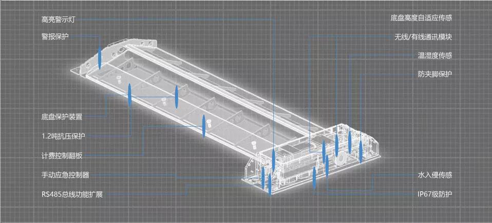 挡板上升、下降时,实时监测外围的障碍物,遇阻立即停止,保护车辆和人员的安全